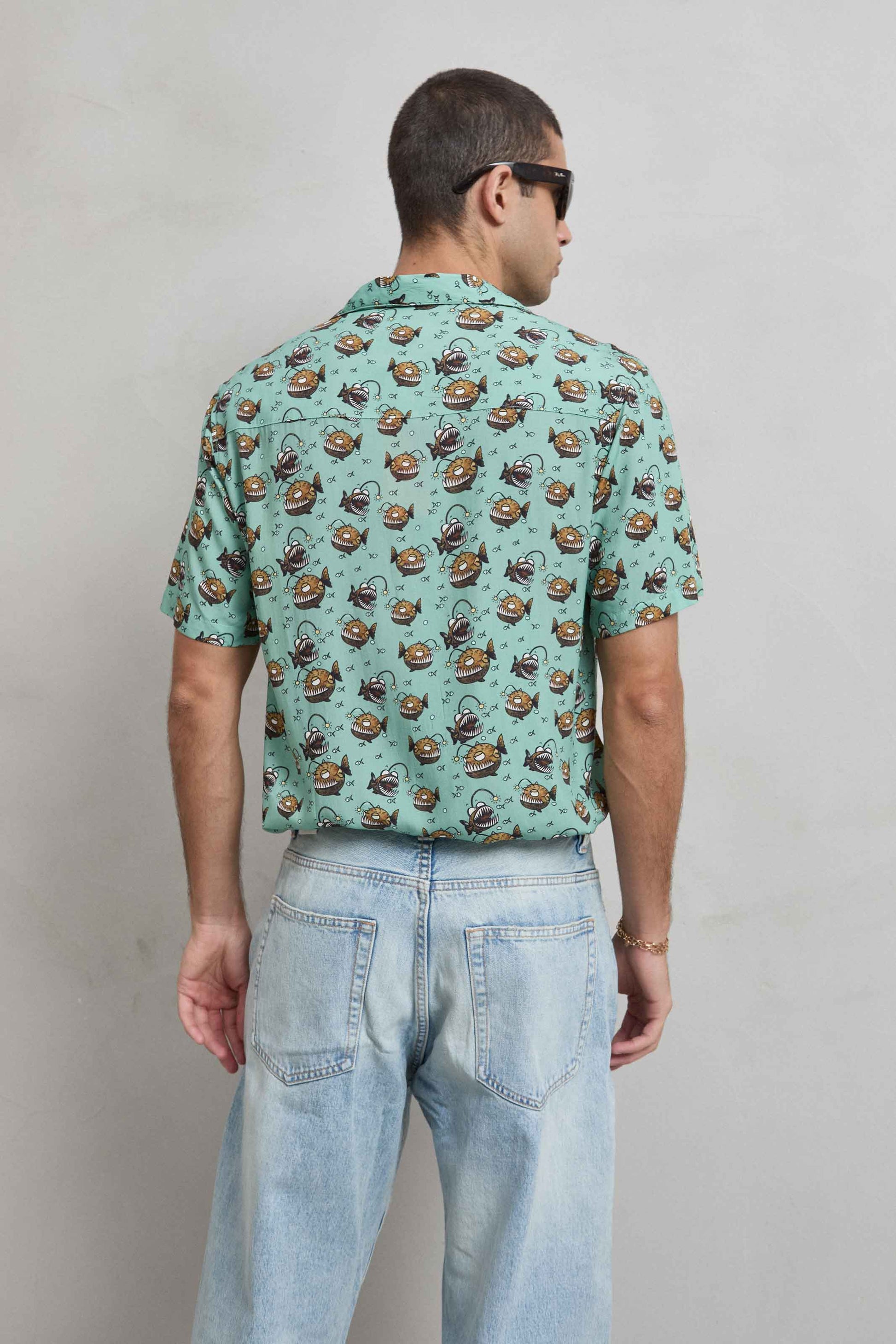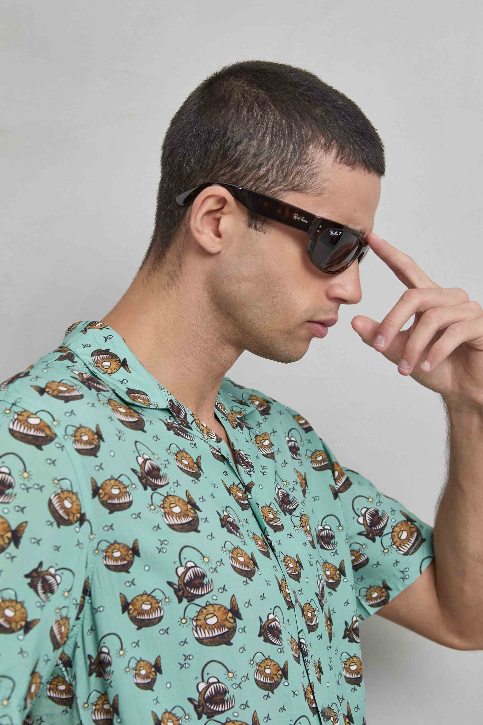 Su corte relajado y la viscosa de alta calidad garantizan una sensación cómoda y transpirable, manteniéndote fresco incluso en los días más calurosos. El diseño de Anglerfish y Pirana aporta un toque único y divertido, ideal para quienes buscan destacar con un estilo tropical y moderno.