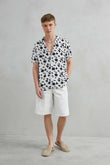 El diseño de estampado completo de tiburones en blanco y negro aporta un aire moderno y único. Su corte de manga corta con aberturas laterales mejora la movilidad y le da un detalle diferente que resalta la silueta y aporta comodidad extra.