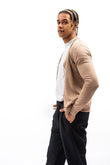 Jersey camel con botón abierto