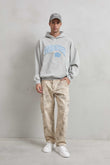 Sudadera gris jaspe con parche bordado “CENTER” en chenilla – Oversize Boxy Fit